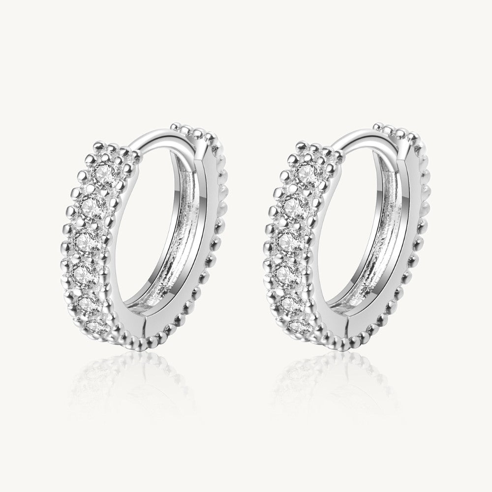 The Vivara Hoops are crafted with brilliant round Moissanite stones set along a sleek huggie silhouette — framed by milgrain edges that add soft texture and vintage-inspired refinement. Designed to catch the light from every angle, they radiate confidence, elegance, and quiet strength.
