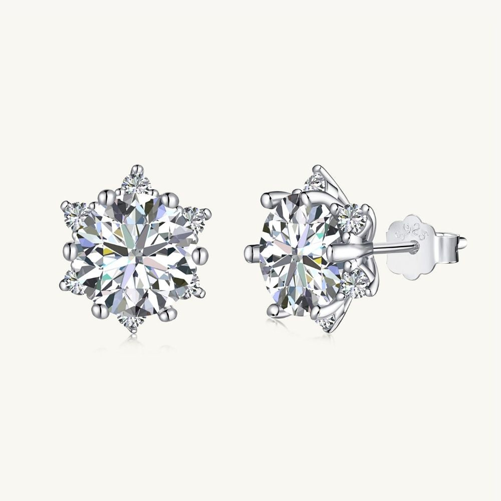 The Astraea studs feature dazzling 2.0-carat round-cut simulated diamonds surrounded by six brilliant accent stones that create a perfect starburst effect. Like catching a shooting star in each ear, these celestial stunners bring heavenly sparkle down to earth.