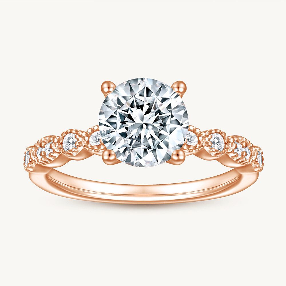 Some classics just need a little embellishment to become extraordinary. The Beatrice features a brilliant 1.3-carat round-cut simulated diamond set on top of an intricate milgrain bezel band that sparkles like tiny stars. This age-old artisan detail transforms a classic round cut into something extraordinarily special.