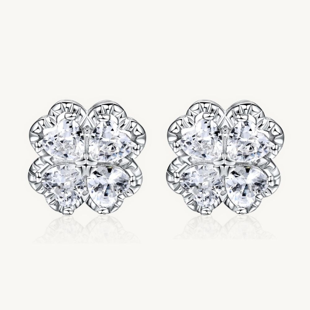 The Clover studs embody both luck and luxury with four perfectly positioned heart-shaped simulated diamonds arranged like a lucky clover. Each stone catches light from every angle, creating a dazzling symbol of good fortune that adorns your ears with both meaning and sparkle.