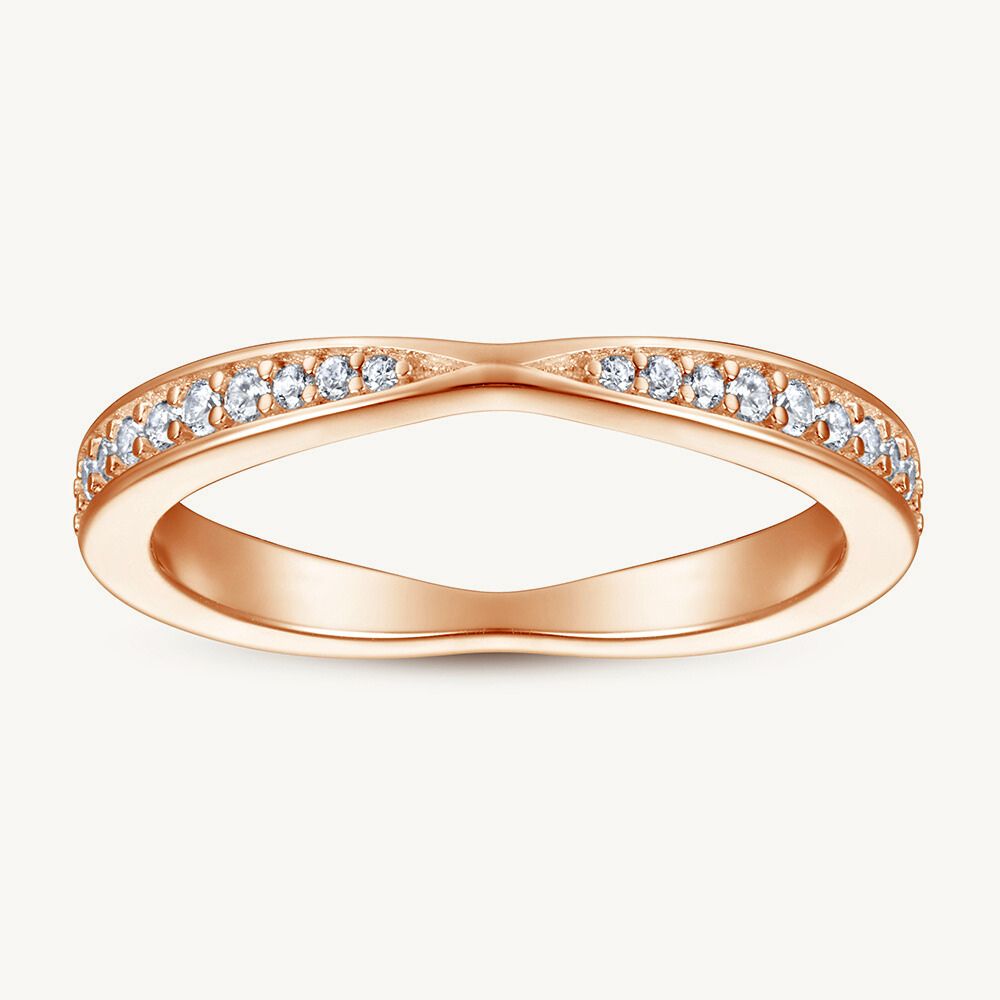 The Infinity adds a graceful twist to your ring story. Wear it as your wedding band, stack it for extra dimension, or let it shine solo - its flowing lines create interest from every angle, while the continuous sparkle reminds you that some love stories have no end.