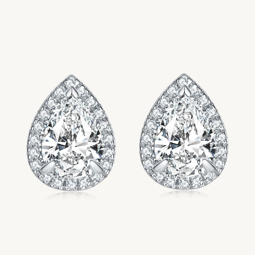 These earrings exude timeless charm with a touch of whimsy. Each features a radiant 0.8-carat pear-shaped stone, framed by a delicate halo that adds an enchanting layer of sparkle. Perfect for gracing a gala evening, complementing a garden stroll, or enhancing your everyday elegance, they offer a graceful teardrop silhouette that whispers sophistication.
