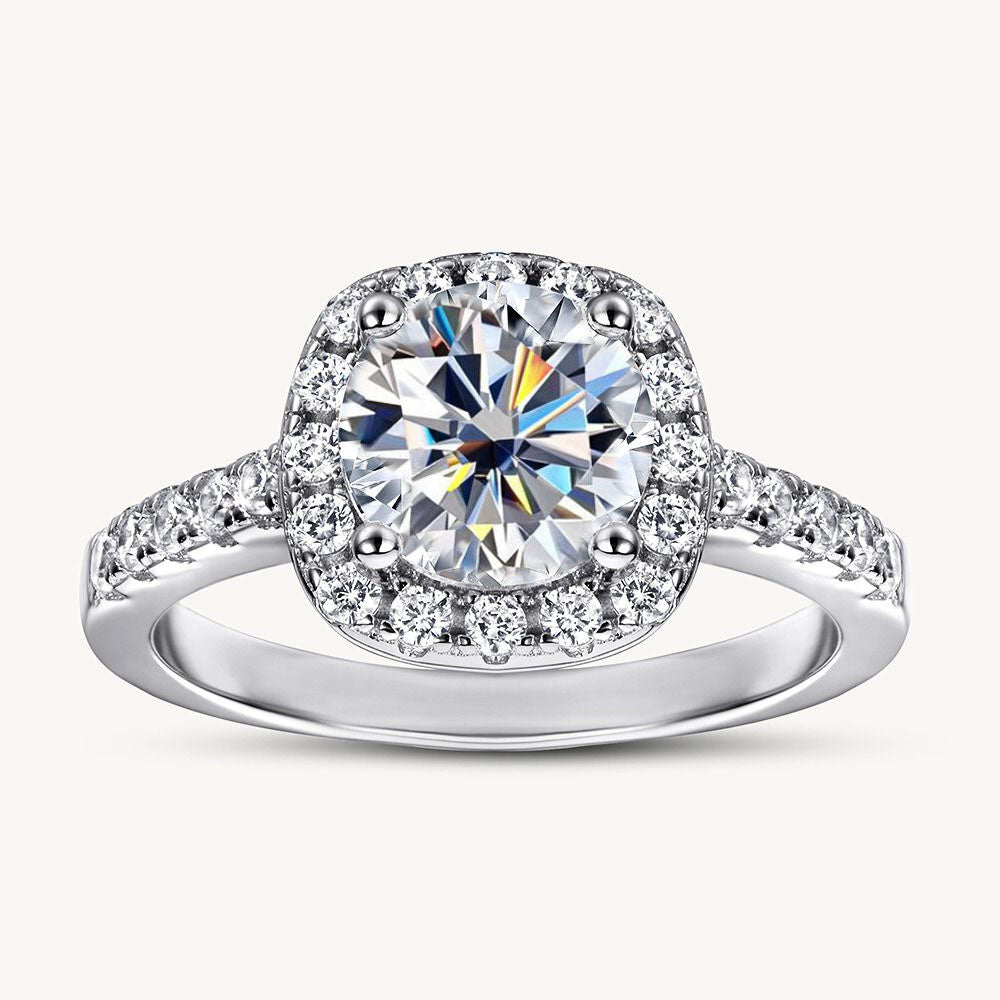 Get ready to fall in love with The Leighton, where soft meets sparkle in the prettiest way possible. This beauty features a brilliant 1.3-carat round-cut simulated diamond that's found its perfect match – a cushion-shaped halo that adds an extra touch of vintage romance to every sparkle. The delicate 1.7mm pavé band completes the look, creating a seamless flow of light that makes this ring impossible to ignore.