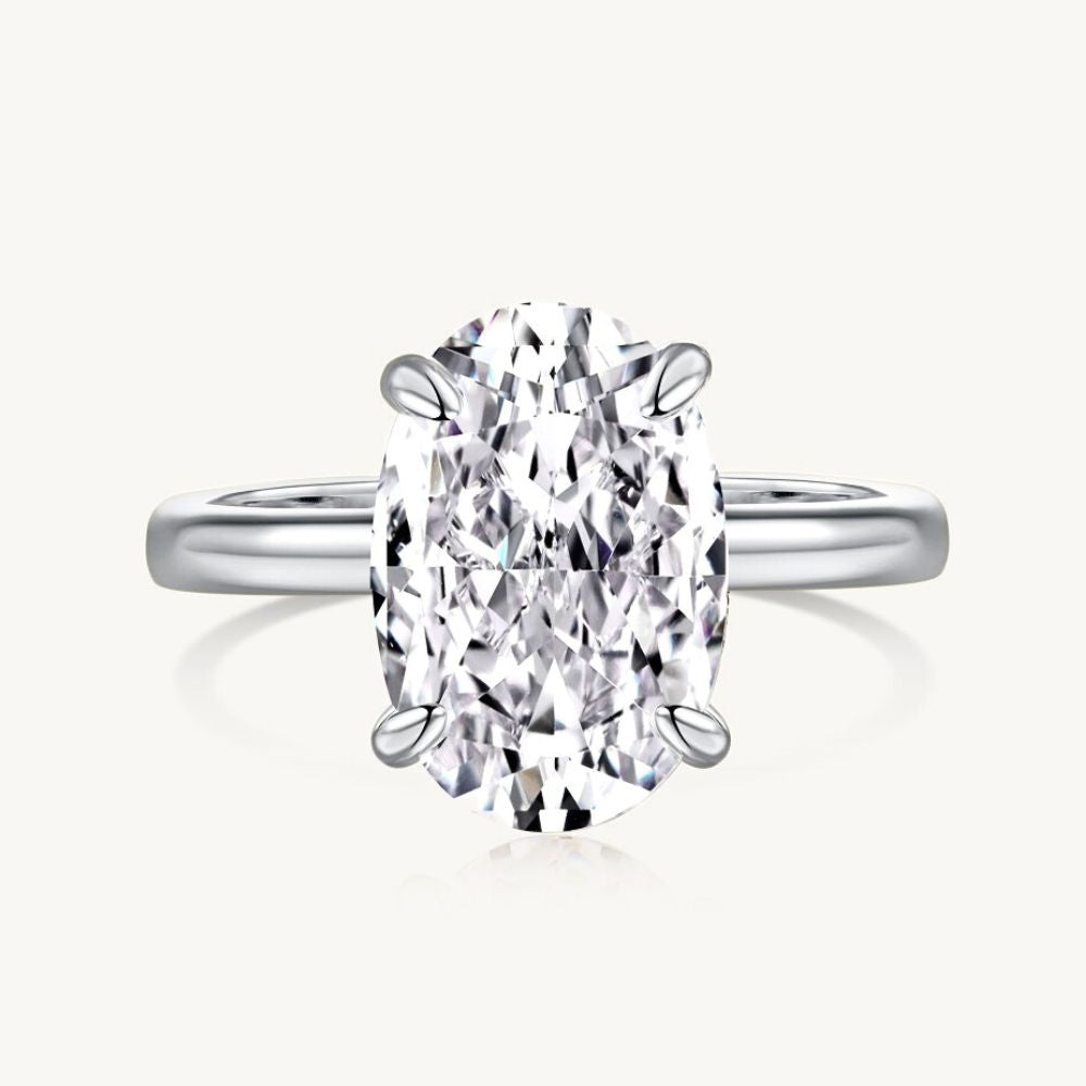 Like a prima ballerina taking center stage, The Odette showcases a magnificent 3.5-carat oval-cut simulated diamond in a performance of pure brilliance. Four graceful prongs lift the stone to catch every spotlight, while the sleek band plays the perfect supporting role to this stunning solitaire.
