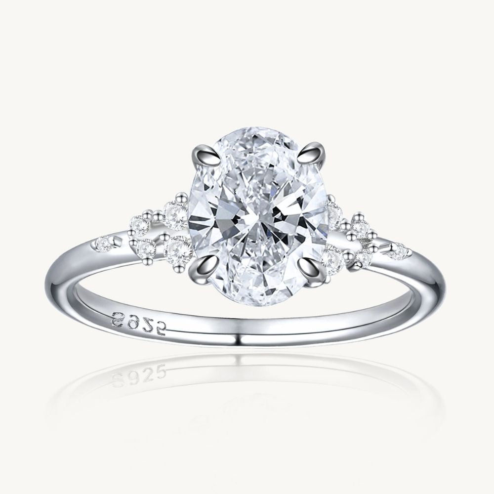Fall in love all over again with The Orabelle. This enchanting ring features a brilliant 2.0-carat oval-cut simulated diamond nestled between sparkling side stone clusters that add just the right touch of romance. The elegant proportions and vintage-inspired details create a piece that's both timelessly beautiful and full of meaning – perfect for celebrating life's most precious commitments or simply reminding yourself how love should sparkle. Every angle tells a story, and this one's just beginning.
