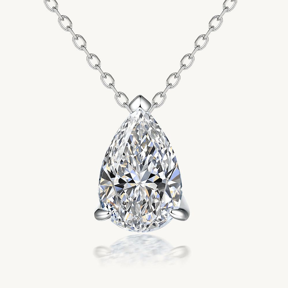 A 4-carat pear-shaped simulated diamond takes center stage in The Verona — delicately suspended on a fine chain for graceful movement and light-catching brilliance. The elongated silhouette flatters the neckline with a soft taper that feels both timeless and modern.